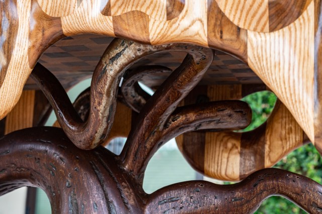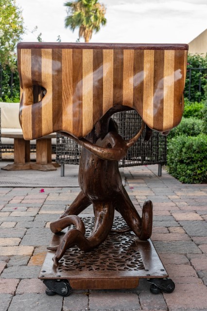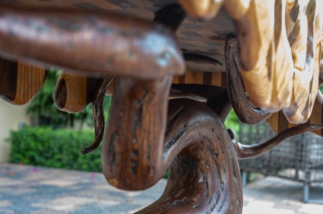 “He mostly works with steel, both scrap and pristine, welding with a torch. For the table-sized pieces, work can be tedious. Sometimes it takes him two week to complete. For the larger pieces? Usually a month each.”