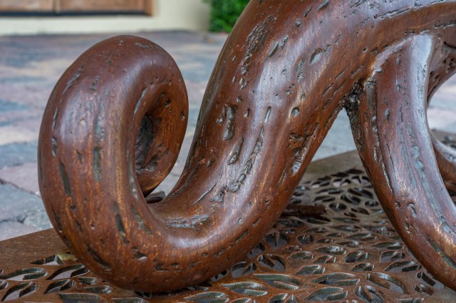 McCallister agrees. “I don’t have a process mapped out; I approach each piece differently,” he notes. He’ll often begin by sketching an outline of the shape on the floor, which he uses as a template to weld together an armature that can stand up. Heavy steel bars are twisted and shaped around the skeleton, starting at a single spot and running up and down the figure, forming tight waves and curlicues. “At no point can you figure out where it starts and stops, which I love,” he remarks. “It creates a seamless effect.”
